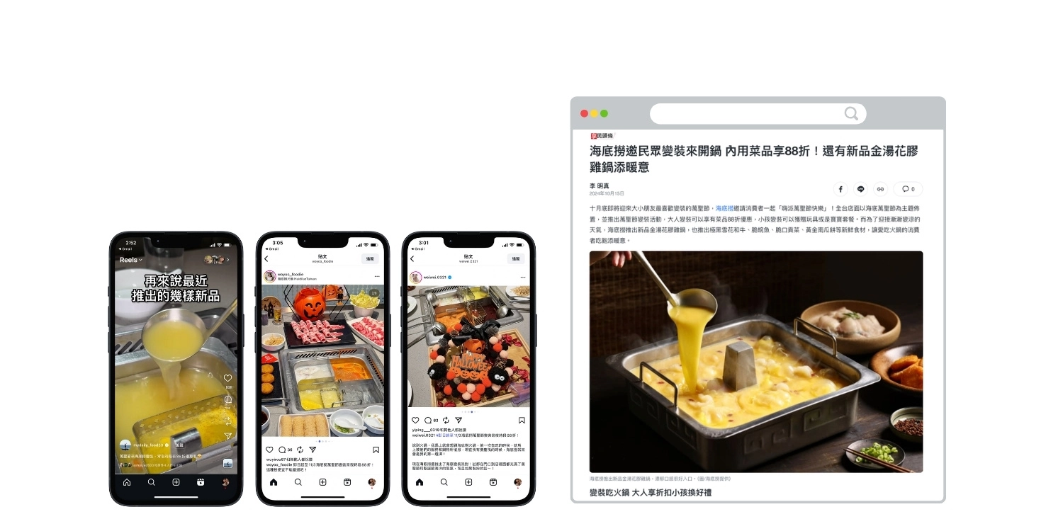 海底撈作為全球火鍋龍頭之一,常舉辦各式活動持續推廣自家品牌的內容,大量曝光讓消費者持續看見品牌的內容